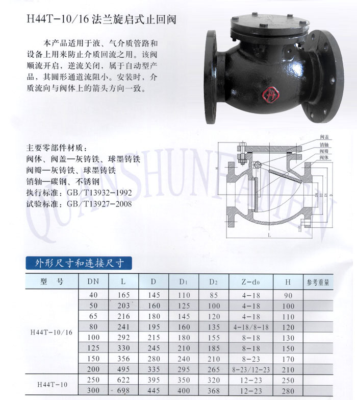 H44T-10/16法蘭旋啟式止回閥(加長)